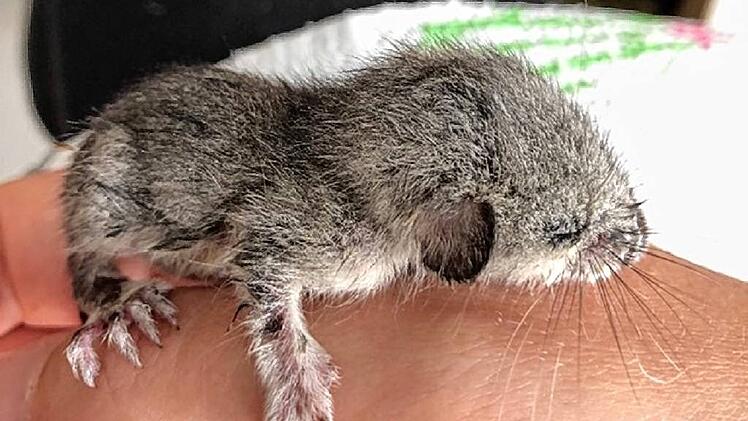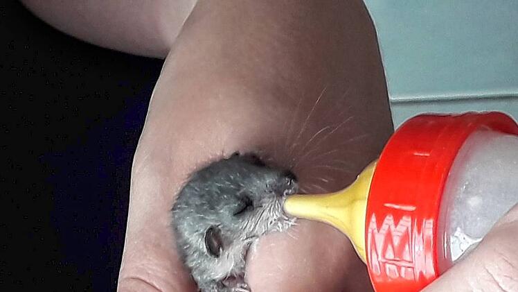 Simone Schellhorn und ihr Mann Uwe arbeiten in einer kleinen Gießerei in Röttingen. Eines Tages lagen zwei winzige Tierchen auf dem Boden der Halle. „Die müssen aus ihrem Nest gefallen sein“, vermutet Simone Schellhorn. Wo genau sich das Nest befand, konnten die beiden nicht herausfinden. „Vermutlich in der Dämmung.“ Zum Glück liegt gegenüber der Gießerei eine Tierarztpraxis. Doch der Arzt wollte die kleinen Siebenschläfer nicht aufnehmen. „Es sind ja auch Wildtiere“, zeigt Simone Schellhorn Verständnis.