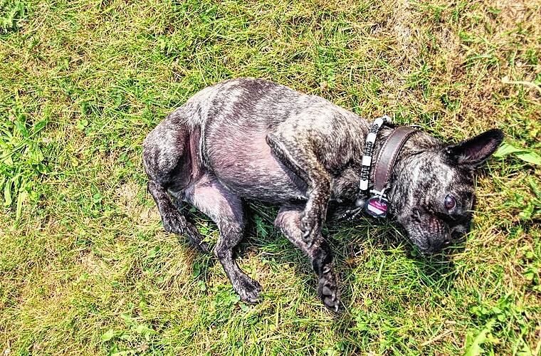 Tanzen? Tatsächlich! In einer Ecke des großen Wiesenplatzes ist ein kleiner Wirbelwind zu beobachten. Die 32-jährige Sandra Weissenbäck aus Würzburg beschäftigt hier ihre Maya, eine putzige Mixtur aus französischer Bulldogge und Chihuahua. „Maya liebt DogDance und Tricks“, erklärt Sandra und Maya bellt, als wolle sie ihr Frauchen bestätigen. Das quirlige Tierchen dreht eine Pirouette nach der anderen, die Vorderpfoten graziös in die Luft gereckt, und wird überhaupt nicht müde. Doch dann ruft Sandra „Peng!“ – und Maya fällt lang gestreckt ins Gras, die rosa Zunge hängt aus dem Mäulchen. Allerdings nur kurz. Nach drei Sekunden hüpft der Hund wieder hoch, wie ein Gummiball, um sich ein Leckerle abzuholen.