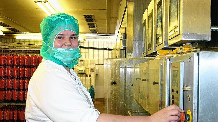 „Das erste Lehrjahr konnte ich sogar überspringen, weil man im ersten Ausbildungsjahr zur Köchin ähnliche Themen bearbeitet wie bei den Metzgern“, sagt sie. Hygiene, Berufs-Sicherheit, Warenkunde: Inhalte, die sie schon kannte. Während ihrer Ausbildung besuchte sie alle Abteilungen ihres Ausbildungsbetriebes, der FrankenGut Fleischwaren GmbH in Rottendorf. „Ich war in der Räucherei, Füllerei und beim Kuttern“, berichtet sie. Relativ schnell hat sich herauskristallisiert, welche Arbeit ihr am besten liegt. Mittlerweile arbeitet Linda Haber in der Räucherei. Doch der Beruf des Metzgers verlangt viel mehr als nur handwerkliches Geschick. Strenge Kontrollen der Lebensmittel-Überwachung stehen täglich an. Außerdem wichtig in der Metzgerei: Die Beachtung des Lebensmittelgesetzes.