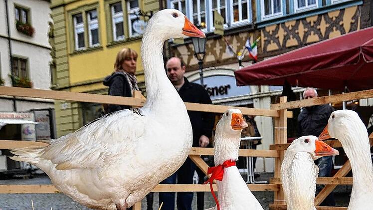 Mit Corona habe das nichts zu tun, sagt Knäulein. Es könnte sich aber als glücklicher Zufall erweisen. Denn Martini fällt in diesem Jahr, zumindest was das Gansessen in den Gasthäusern betrifft, komplett der Pandemie zum Opfer. Manch einer wird sich vielleicht den Gänsebraten zum Mitnehmen bestellen. Das wird die Verluste aber nicht ausgleichen können. Im Schwarzen Ross in Hörblach ist die Familie Huber jedenfalls froh, dass sie in weiser Voraussicht weniger Gänse zur eigenen Aufzucht auf dem angegliederten Hof angenommen hat. „Gut möglich, dass mancher Züchter in diesem Jahr auf seinen Gänsen sitzen bleibt“, meint auch Claus Schmiedel, der am Kitzinger AELF verantwortlich ist für die Geflügelberatung.