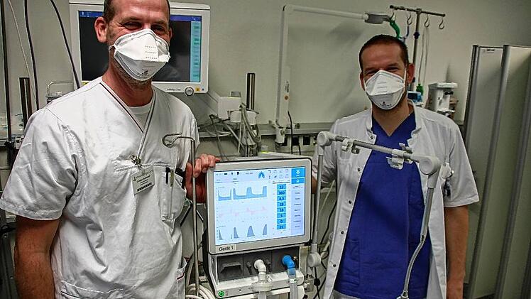 Die steigenden Corona-Zahlen haben sich längst in der Klinik Kitzinger Land niedergeschlagen. Gab es in den Sommermonaten kaum Patienten mit Covid-19, wurden Ende letzter Woche vier Menschen in die Intensivstation eingeliefert. Alle zwischen 54 und 66 Jahre alt – und damit deutlich jünger als die Patienten, die im Frühjahr behandelt wurden. Besondere Vorerkrankungen weisen diese Patienten nicht auf. Wegen akuter Atemnot suchten drei von ihnen selbst die Notaufnahme auf und wurden auf die Intensivstation verlegt. „Zwei mussten intensiv beatmet werden“, berichtet Oberarzt Dr. Daniel Palinkas. Im Gegensatz zu den sehr geringen Erfahrungen zu Beginn der Pandemie werden die Patienten – wenn möglich – zur Atemtherapie nicht ins künstliche Koma gesetzt. Die Behandlung erfolgt non-invasiv, will heißen: Die Betroffenen bleiben bei Bewusstsein und werden mit Hilfe einer Maske beatmet. „Die Gefahr von Langzeitschäden soll so minimiert werden“, erklärt Dr. Rapp. Grundsätzlich seien die Behandlungsmethoden von Covid-19-Patienten aber noch nicht ausreichend erforscht, bedauern die Kitzinger Ärzte. Als weitere Therapieoptionen werden heute Cortison und Medikamente zur Blutverdünnung gegeben.