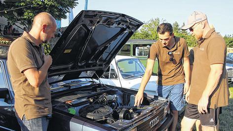 Drumherum wuseln 13 Herren zwischen Anfang 20 und Mitte 60 sowie eine Dame. Ihnen geht auch nach Stunden der Gesprächsstoff nicht aus. Ob ein Defekt am Kühlergrill der 30er-Jahre-Limousine oder ein Kratzer im Lack des noch nicht einmal 30 Jahre alten, schwarz glänzenden BMW: Die Fahrzeuge bedeuten unerschöpflichen Informations- und Schraubbedarf.