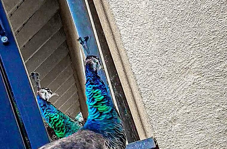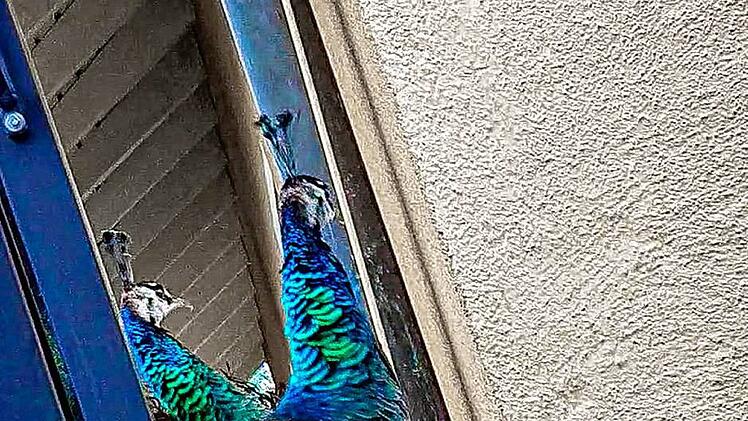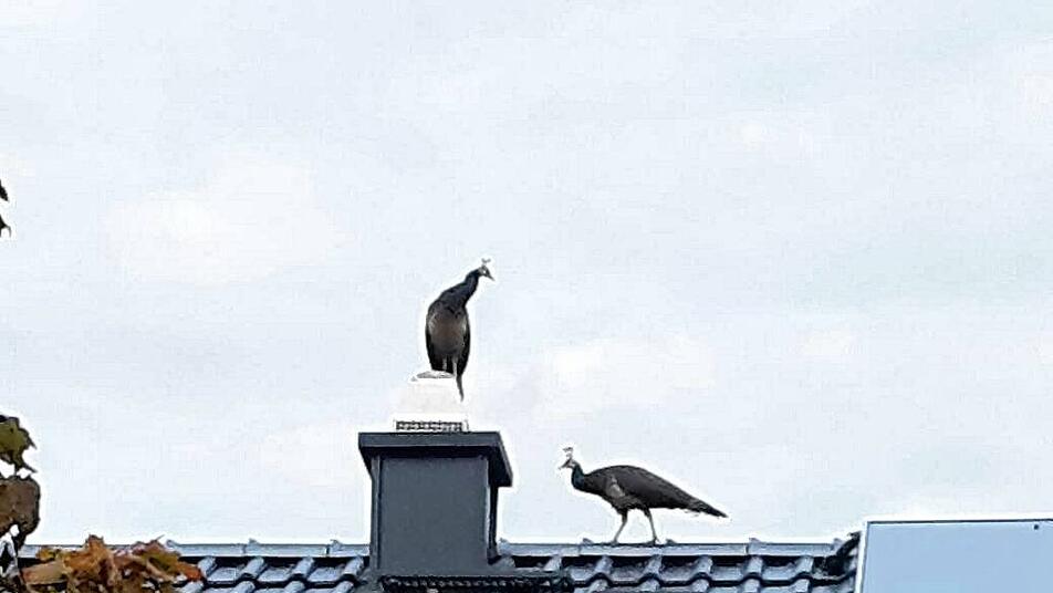 Gitti Heiligtag kann sich noch gut an den Tag erinnern: Es war ein Sonntag und sie hat mit ihren Enkeln „Mensch ärgere Dich nicht“ gespielt, als ihr Mann plötzlich ausrief: „Schaut mal, da sind zwei Pfauen im Garten.“ Im ersten Moment habe sie gedacht, ihr Mann sei verrückt geworden, gesteht sie am Telefon und muss lachen. Schnell stellte sich heraus, dass ihr Mann völlig klar bei Verstand war und ist. Die beiden Pfauen gab und gibt es wirklich. Sie sorgten im Oktober über mehrere Tage hinweg für Aufsehen in der Kitzinger Siedlung. Und tun es jetzt wieder. Mitte Oktober hat Heinz Herrenschmidt die beiden Tiere zum ersten Mal gesehen. Den ganzen Vormittag haben sie auf dem Dach des Nachbarhauses verbracht, berichtet er. Herrenschmidt wohnt in der Böhmerwaldstraße. Nicht nur dort sind die beiden Pfauen gesichtet worden. Im Internet berichten etliche Bewohner der Siedlung von Sichtungen, unter anderem in der Steigerwaldstraße. Im November und Dezember war Ruhe. Anfang Januar ging es wieder los. „Zuletzt habe ich sie am Dienstag dieser Woche gesehen“, erzählt Herrenschmidt. Früh um 8 Uhr stolzierten sie in seinem Garten umher, immer zu zweit. „Da ist es doch wahnsinnig kalt“, sagt er und sorgt sich. „Ob die bei uns überleben können?“