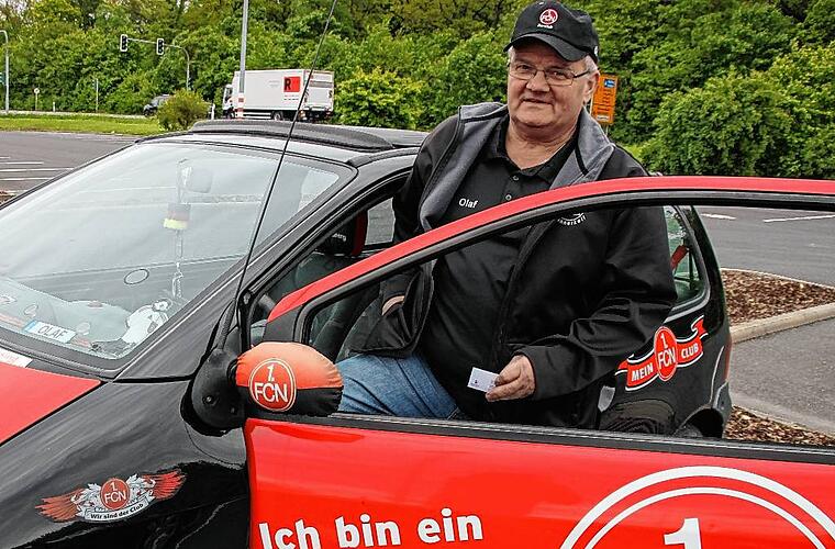 Treffpunkt Parkplatz am Kaufland in Kitzingen: Olaf Müller kommt aus Geiselwind angefahren. Zu übersehen ist er nicht. Sein Auto ist ein rollendes Statement. Seht her: Ich bin ein Club-Fan.