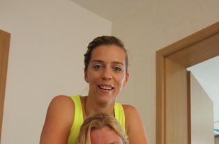 Noch eine Minute und ich sterbe. Denke ich. Aber ich lass' es mir nicht anmerken. Schön lächeln. Schön weiterspringen . . . Neben meinem Trampolin stehen Claudia Schemm und Diana Börner, zwei wirklich liebenswerte junge Frauen. Beide sind Fitness-Trainerinnen aus Leidenschaft. Sie feuern mich an. „Geh' richtig rein, hüpf' nicht nur an der Oberfläche auf und ab.“ Mir wird immer heißer, meine Beine brennen. Wie schaffen es Kinder nur, stundenlang auf einem Trampolin herumzutollen?