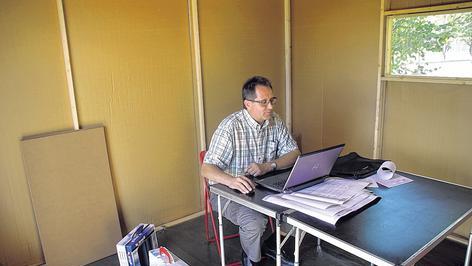 Innopark in Kitzingen: Wo früher die US-Soldaten stationiert waren, tüfteln jetzt deutsche Unternehmen an Lösungen für die Zukunft. Völlig unscheinbar steht eine mögliche Lösung für Flüchtlingslager in Krisenregionen in einem abgeschlossenen Bereich des ehemaligen Kasernengeländes. „Vor einem Jahr haben wir unseren Prototypen des Kartonhauses hier aufgestellt“, erklärt der Architekt aus Mainbernheim und deutet auf ein zirka sechs auf 3,5 Meter großes Haus aus Karton.