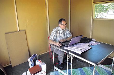 Innopark in Kitzingen: Wo früher die US-Soldaten stationiert waren, tüfteln jetzt deutsche Unternehmen an Lösungen für die Zukunft. Völlig unscheinbar steht eine mögliche Lösung für Flüchtlingslager in Krisenregionen in einem abgeschlossenen Bereich des ehemaligen Kasernengeländes. „Vor einem Jahr haben wir unseren Prototypen des Kartonhauses hier aufgestellt“, erklärt der Architekt aus Mainbernheim und deutet auf ein zirka sechs auf 3,5 Meter großes Haus aus Karton.