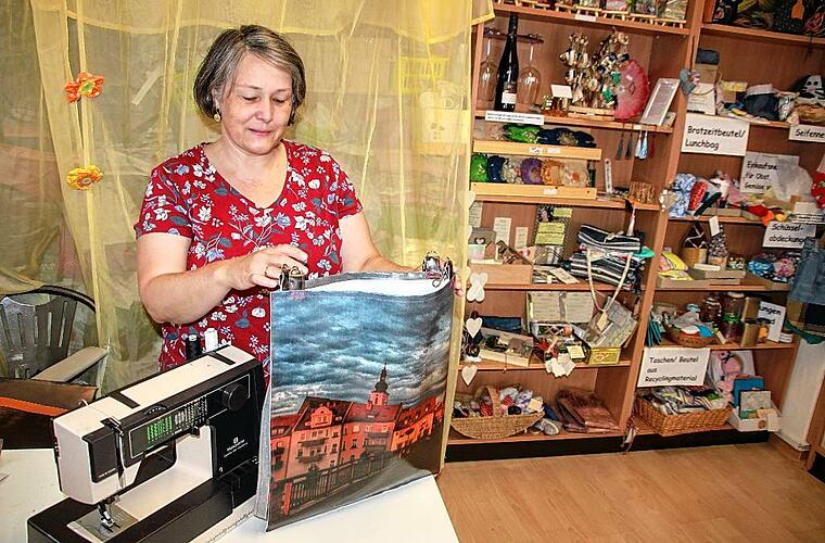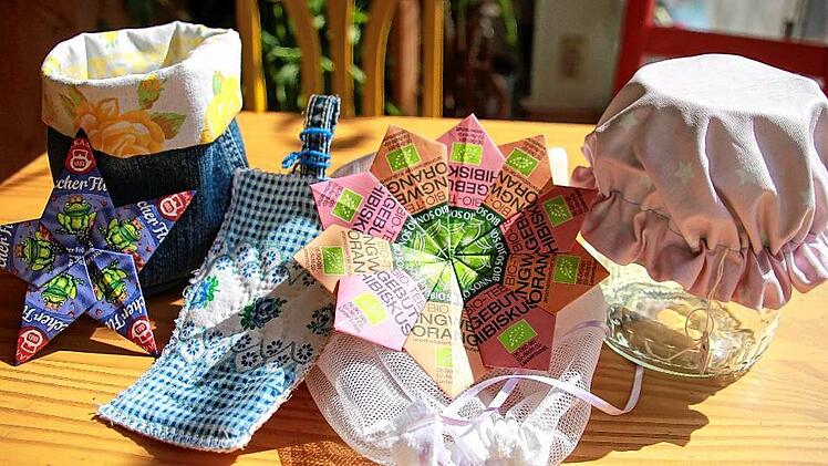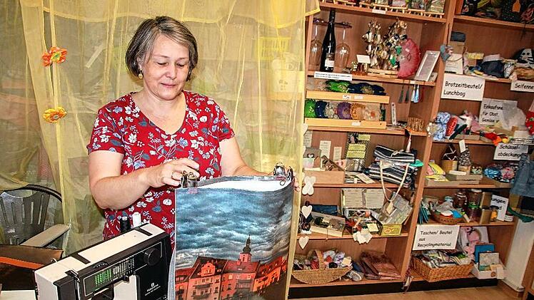 Das Angebot kam sehr gut an“, erinnert sich Bianca Tröge, die immer wieder auf der Suche nach Materialien ist, aus denen sie neue Dinge herstellt. Vom Kitzinger Fotografen Hans Will hat sie Bilder seiner Ausstellung „Kitzingen im Fokus“ bekommen, die vor ein paar Jahren im Stadtmuseum gezeigt worden war. „Daraus lassen sich originelle Taschen nähen“, sagt sie. Aus Werbeprospekten macht sie Umschläge, aus Kalenderblättern Tüten, aus alten Jeans trendige Taschen und die Säckchen, in den Obst und Gemüse beim Einkauf platziert werden können, waren früher Gardinen. „Einfach ausprobieren“, rät Bianca Tröge. Allemal besser als wegschmeißen.