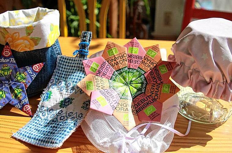 Das Angebot kam sehr gut an“, erinnert sich Bianca Tröge, die immer wieder auf der Suche nach Materialien ist, aus denen sie neue Dinge herstellt. Vom Kitzinger Fotografen Hans Will hat sie Bilder seiner Ausstellung „Kitzingen im Fokus“ bekommen, die vor ein paar Jahren im Stadtmuseum gezeigt worden war. „Daraus lassen sich originelle Taschen nähen“, sagt sie. Aus Werbeprospekten macht sie Umschläge, aus Kalenderblättern Tüten, aus alten Jeans trendige Taschen und die Säckchen, in den Obst und Gemüse beim Einkauf platziert werden können, waren früher Gardinen. „Einfach ausprobieren“, rät Bianca Tröge. Allemal besser als wegschmeißen.