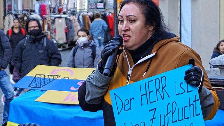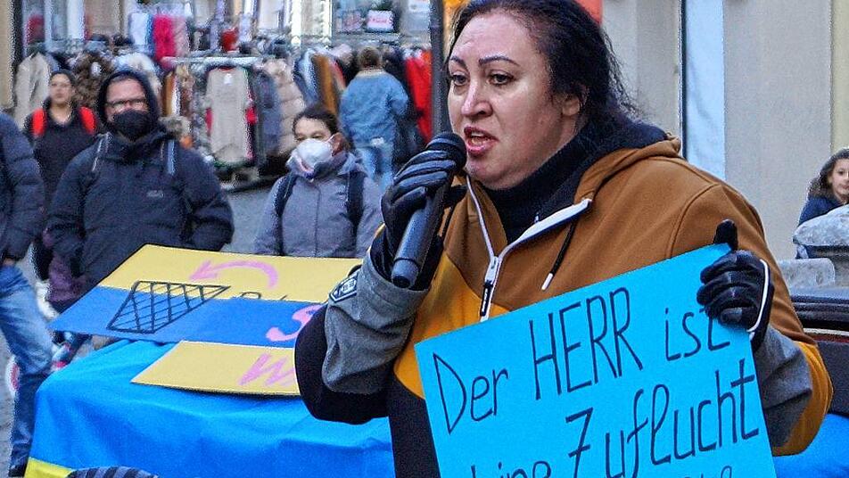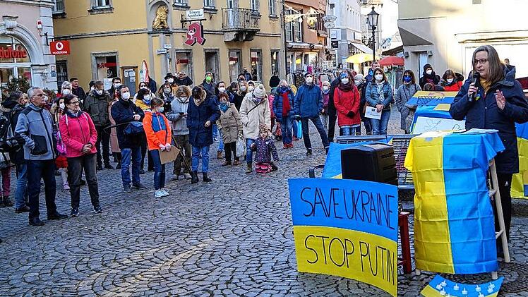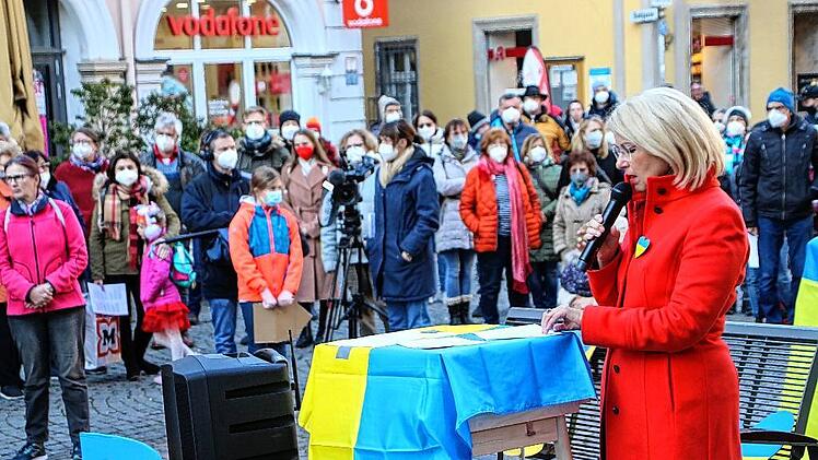 Schon während der Mahnwache wurde deutlich, wie diese Hilfe aussehen kann. Nicht nur, dass viele Teilnehmer für die Ukraine spendeten – das Geld wird dem BRK weitergegeben. Auch ein Appell von Olga Kimbel fiel schnell auf fruchtbaren Boden. Die Ukrainerin lebt schon lange in Kitzingen, in ihrem Heimatland aber sind viele Mitglieder ihrer Familie direkt vom Krieg betroffen. Ihre Schwester musste die Ukraine verlassen, ihren Mann dort zurücklassen. Sie ist nach Warschau geflohen. Viele Bekannte seien auf der Flucht. „Morgens frage ich immer alle am Telefon ab: Seit ihr noch am Leben? Geht es euch gut?“