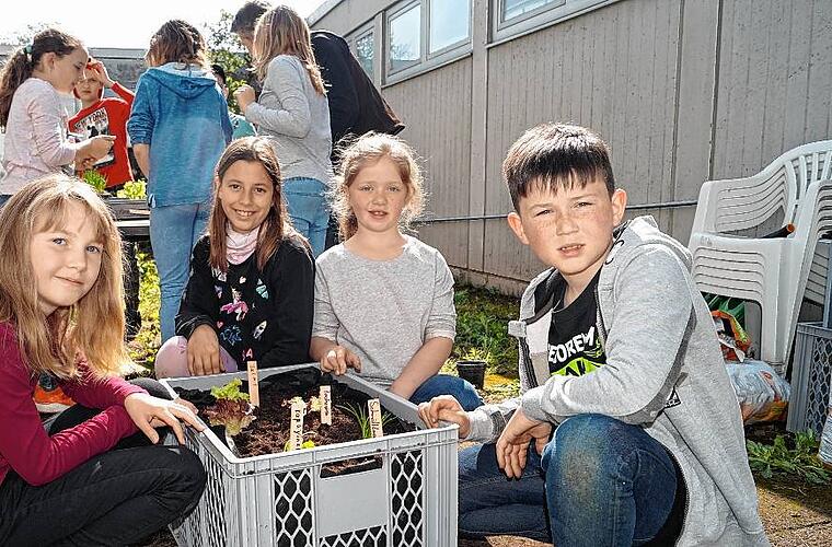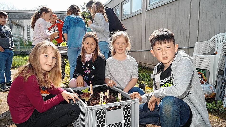 Geiselwinder Schüler werden zu Gemüsepaten: Die Zweit- und Drittklässler pflanzen, gießen, pflegen und ernten Salat, Kresse, Schnittlauch und Radieschen. In ein paar Wochen werden sie aus dem Angebauten ein leckeres Gericht zaubern.