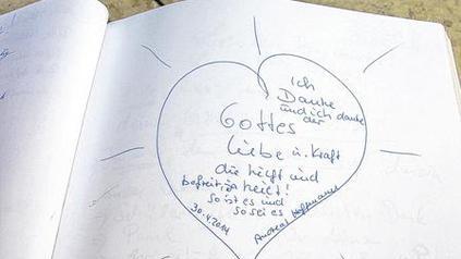 Dass viele Menschen ihr Schicksal in Geiselwind vor den Herrn tragen – davon zeugt auch das mittlerweile elfte Anliegenbuch. Es liegt im Nebenraum, jeder kann seine Gedanken, Gebete und Hoffnungen hineinschreiben. Es gibt Seiten in den verschiedensten Sprachen.
