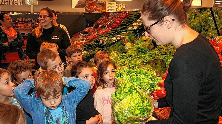 Der aufregende Vormittag der zwölf Kinder beginnt mit einer Begrüßung durch das Supermarktpersonal. Passenderweise werden die Jacken erst einmal in einem Einkaufswagen gesammelt. Dann beginnt eine detaillierte Führung durch den Markt. Die erste Station ist ein Blick hinter die Kulissen. „Was macht ihr denn mit euren leeren Flaschen?“, werden die Kinder gefragt. Nach dem ersten Impuls „wegwerfen“, fällt dann doch das Stichwort: „Die kommen in den Automaten!“