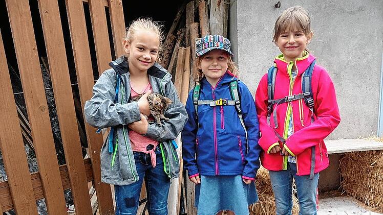 Acht Katzenwelpen balgen sich am Eingang des Bauernhofes von Monika und Günter Hegwein in Enheim. Als die beiden dritten Klassen der St.-Hedwig-Grundschule Kitzingen eintreffen, gibt es zunächst ein großes Hallo um die niedlichen Tiere. Doch den Hegweins gelingt es schnell, die Aufmerksamkeit der Schüler zu gewinnen. Sie haben viel vorbereitet für ihre Gäste. Heute ist schließlich ein ganz besonderer Schultag..