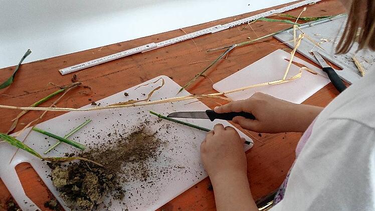 Monika Hegwein lässt inzwischen verschiedene Getreidesorten herumgehen. Mais oder Hafer? Gerste oder Weizen? Was ist Triticale? Und wie sieht so ein Getreidestängel von innen aus? Im Zweifelsfall gilt: Aufschneiden und nachschauen. Am Nachbartisch wird bereits Mehl gemahlen, werden Flocken gepresst und geröstet und die Zutaten für ein Müsli geschnitten. Auch Plätzchen kommen in den Ofen. Denn hier wird mit allen Sinnen gelernt, wie Monika Hegwein betont. Und tatsächlich sind alle am arbeiten, am schauen, kosten, schnuppern und zuhören.