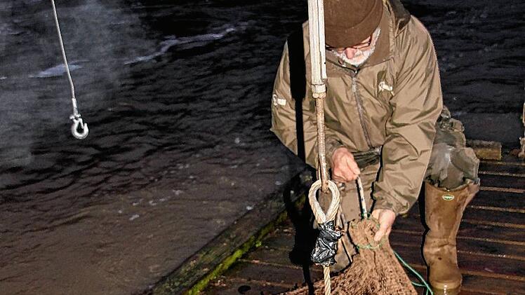 Detlef Greiner und seine Helfer leiden ein paar Tage lang unter akutem Schlafmangel – dafür können möglichst viele Aale im Main überleben.