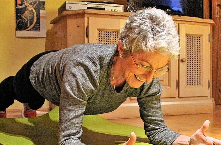 Seit über zwei Jahrzehnten leitet Erika Hartmann Gymnastikkurse, an denen vorwiegend Frauen, aber auch einige Männer teilnehmen. Corona-bedingt entfallen ihre Seminare in der Sporthalle von Kleinlangheim (nahe Drei-Franken-Eck) derzeit. Die Übungsleiterin kompensiert das, indem sie mit ihrem Mann Edmund durch Franken radelt und daheim Krafttraining macht. „Man muss gut auf seinen eigenen Körper hören“, sagt sie. „Übertreiben soll man es nicht, eine Übersäuerung der Muskeln ist nicht sinnvoll.“ Es gehe darum, die individuell richtige Balance zu finden zwischen „Ruh?n und Tun“.