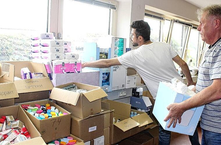 In den ersten Tagen und Wochen stapelten sich die Kisten bei den Helferinnen. „Die Spendenbereitschaft war – und ist – enorm“, erzählt Anna Poser. Ihr Carport in Mainbernheim war in Windeseile bis unter die Decke vollgestellt. Bei Stefanie Hüser glich der Hausflur einem Paketzentrum. „Meine Töchter waren heilfroh, als sie endlich wieder in den Garderobenspiegel sehen konnten“, erzählt die Kitzingerin lachend. Über die Freiwilligenagentur GemeinSinn bekam die Gruppe schließlich die Räumlichkeiten in Mainbernheim zur Verfügung gestellt.
