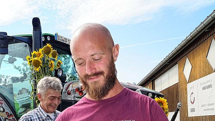 BBV-Kreisobmann Alois Kraus hat den Schlepper vor der Scheune von Christoph Sterk an der Straße zwischen Großlangheim und Rödelsee abgestellt, wenige Meter entfernt von den Feldern, auf den Aronia-Beeren wachsen. Der Betrieb der Familie besteht seit mehreren Generationen und lange lag der Schwerpunkt auf Ackerbau und Milchvieh. Seit 30 Jahren werden Spargeljungpflanzen produziert und in viele Länder vermarktet. Christoph Sterk hat sich beim Einstieg in den Betrieb vor wenigen Jahren einen anderen Weg ausgesucht: Er hat mit der Bio-Landwirtschaft begonnen und eine Aroniaplantage angelegt. Die kleine dunkle Beere stammt ursprünglich aus Kanada, ist in Nordamerika, Teilen Europas und Sibirien beheimatet. Wegen der wertvollen Inhaltsstoffe gilt Aronia als „Superfood“, ebenso wie der von Christoph angebaute Sanddorn und die Minikiwis von Theresa Sterk. Diese Kiwibeeren zum Snacken können mit Schale gegessen werden. Sie reifen bis in den Spätsommer. Die Sterks verkaufen ihre Produkte auf ihrem Hof, teilweise auch im Einzelhandel. Dass der Trend hingeht zu gesunden Lebensmitteln aus der Region passt genau zu dem Weg, den Christoph Sterk eingeschlagen hat, als er sich nach seinem Berufsleben als IT-Fachmann dafür entschied, doch in die Landwirtschaft einzusteigen. Er experimentiert mit seinen Nischenprodukten, weitet das Angebot aus. Zum Aronia-Saft aus der Anfangszeit sind längst Trockenbeeren und Pulver hinzugekommen, Likör und jetzt sogar Gummibärchen.
