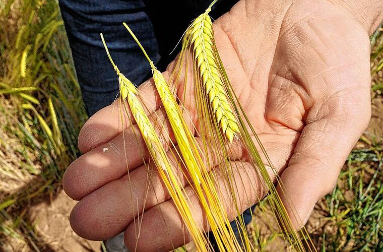 Inzwischen wissen die Landwirte, wie ernst die Situation ist. Und einige Wochen nach der Frostnacht ist auch beim Hinschauen deutlich zu erkennen, dass etwas mit der Wintergerste nicht stimmt: Ein Teil der Ähren neigt sich, bedingt durch das Gewicht der inzwischen gewachsenen Körner. Die meisten aber schauen weiter senkrecht nach oben - sie sind leicht, weil sich keine Körner gebildet haben. Und während die guten Ähren grün sind, erscheinen die anderen schon jetzt gelb. „Die Ähren sind flach geblieben. Das wird jeden Tag deutlicher“, erklärt Alois Kraus.