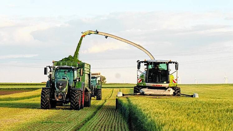 Thomas Schmitt baut auf zehn Hektar Wintergerste an. Mancherorts hat er 80 Prozent Schaden, an anderer Stelle 60 Prozent. Was nun anfangen mit dem Getreide? „Ich lasse es zum Dreschen stehen“, sagt der Willanzheimer. Er braucht die Gerste für seine Tiere, das Stroh zum Einstreuen. Jetzt zu häckseln und später Futter zukaufen zu müssen, ergibt wenig Sinn. Auch Ernst Drobek, BBV-Ortsobmann, der auf 16 Hektar Wintergerste anbaut, wird das Getreide stehen lassen und dreschen. „Das ist Futtergetreide für unser Milchvieh. Wir wollen es mit unserem eigenen Futter ernähren.“ Eine Alternative vor allem für Betriebe, die kein Milchvieh haben, ist es, die Wintergerste jetzt als Ganzpflanzensilage zu ernten und beispielsweise an Biogasanlagen zu liefern.