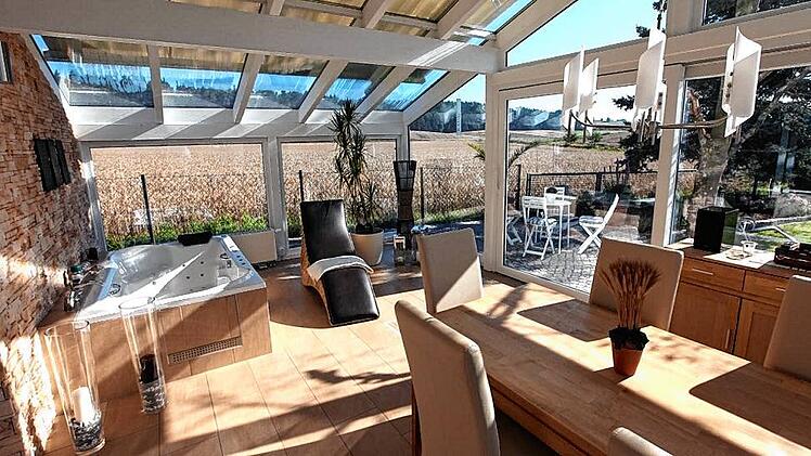 Handwerklich ist Tremml vielseitig begabt. Und das hat ihm in all den Jahren geholfen. Nach und nach hat er das Feriendomizil ausgebaut und verfeinert, immer in Eigenregie. „Mal abgesehen von der Elektrizität.“ Erst kam das neue Ferienhaus, dann ein Schwimmteich mit gemauerter Außendusche. Durchmesser: zwei Meter, Gewicht: fünf Tonnen. Um den Whirlpool hat er einen Wintergarten mit Fußbodenheizung gebaut. Ein Farbkonzept stimmt den Innen- mit dem Außenbereich ab. „Drei Farben, die sich wiederholen“, erklärt der 59-Jährige. „Wir haben nur Naturfarben verwendet.“ Zwei Bäder und fünf Terrassen hat das Domizil, das für vier Personen ausgelegt ist. Der Preis variiert, je nach Jahreszeit. Richtwert: ab 150 Euro pro Nacht.