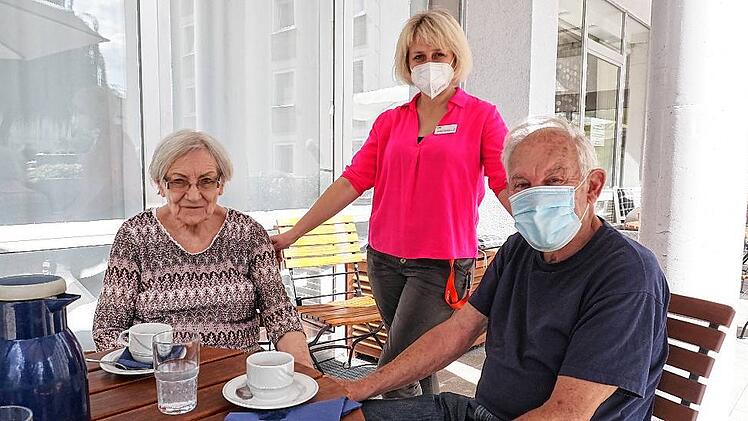 Ursula Seufert-Göß sitzt am Mittwoch mit ihrer Mutter, die seit sechs Jahren in St. Elisabeth lebt, draußen vor der Tür. „Man merkt schon, dass das Personal mehr unter Druck steht. Das war am Anfang nicht so.“ An der Pflege mangle es nicht, betont sie, aber manche Angebote könnten seit Corona einfach nicht mehr durchgeführt werden. Trotzdem fühle sich ihre Mutter Helene Seufert dort sehr wohl. „Sind wir froh, dass wir hier sind“, sagt die Seniorin, die schon zwei Corona-Erkrankungen überlebt hat.