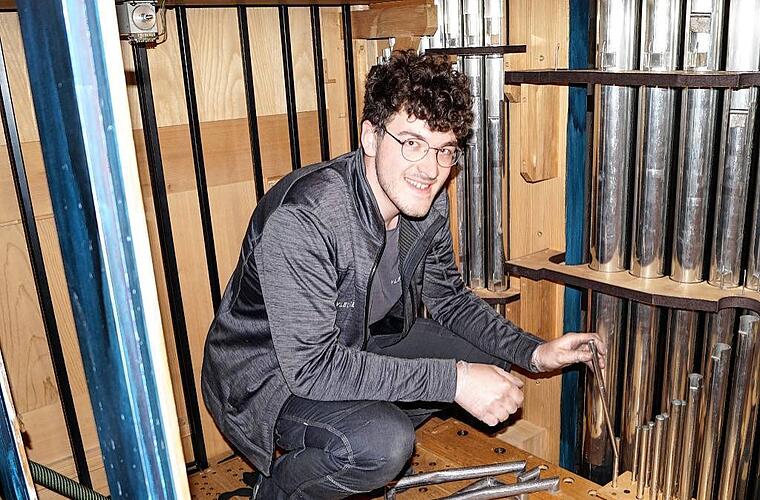 Überall Pfeifen: nebeneinander auf dem Boden liegend, an die Brüstung der Empore gelehnt, fein säuberlich in Regalen aufgereiht. Es sind hunderte kleine und große Metallrohre, und immer noch reicht Joshua Bernhard weitere aus dem hölzernen Konstrukt, das sich auf der Empore der St. Johannes-Kirche befindet. Der Auszubildende der Orgelmanufaktur Vleugels räumt gemeinsam mit Intonateur Christian Heiden das Rückpositiv der gewaltigen Orgel aus.