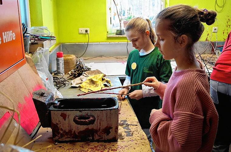 Nach mehreren Versuchen haben dann doch alle Minigärtner ihre Zweige fertig. Diese werden dann in flüssiges Wachs getaucht, um die Verbindungsstelle zu schützen. Im Frühjahr werden die verbundenen Zweige ausgepflanzt, damit sie Wurzeln bilden können. Etwa im Mai, Juni wird dann die Wachsschicht wieder entfernt.