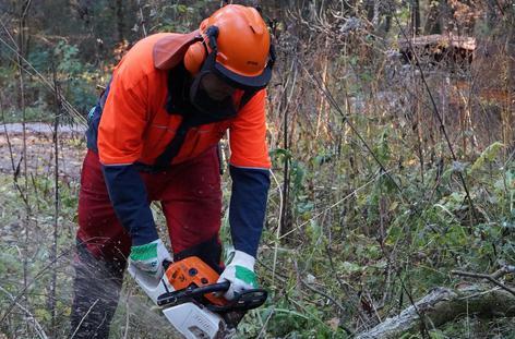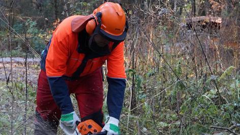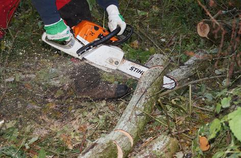 Eine Rolle spielt dabei auch die körperliche Fitness: Waldarbeit ist anstrengend, so dass auch Erschöpfung oder Unachtsamkeit aufgrund der Anstrengung dazu führen, dass Menschen sich verletzen. Neben der Ausrüstung und der Säge gibt es deshalb eine dritte Voraussetzung für den Motorsägenkurs. Dieter Rammensee: „Man muss auf jeden Fall mindestens 18 Jahre alt, körperlich gesund und fit sein.“