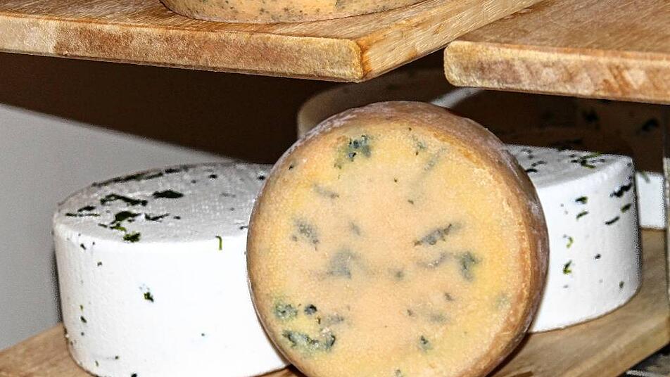 Drei- bis fünfmal pro Woche steht Carola Brunner mit ihrer Mitarbeiterin Dilfuza Jumaniyazova am großen Kessel in der Käserei, jedes Mal wird eine andere Sorte hergestellt. 40 hat die Hofkäserei insgesamt im Sortiment, von Löwenzahn-Sauerampfer- und Ziegengrillkäse über Bockshornklee- und Roter-Chili-Käse bis zum Silvanerkäse und dem Frankenlaib. Meist hat sie selbst die Idee, eine neue Sorte zu kreieren, in einigen Fällen aber setzt sie auch Kundenwüsche um. Beim Bockhornklee zum Beispiel, den sie von sich aus nicht hergestellt hätte. Aber er schmeckt ihr und er schmeckt auch den Kunden und ist gut nachgefragt, wenn die Ware auf den Märkten angeboten wird – freitags in Kitzingen, samstags in Würzburg und am Freitagnachmittag direkt auf dem Hof im Willanzheimer Ortsteil Herrnsheim.