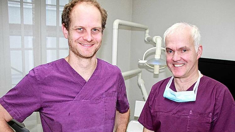 Für Christian Steigenberger hat sich die Berufslaufbahn mit dem fließenden Übergang in der Kitzinger Praxis „wundersam gefügt“. Als Sohn von Allgemeinärzten ist er in Rimpar aufgewachsen, hat in Würzburg Medizin und Zahnmedizin studiert und in Hannover die Facharztausbildung absolviert. Der Ruf der Heimat wurde für den dreifachen Familienvater, dessen Frau als Lehrerin in Würzburg arbeitet, allerdings immer lauter. „Ich wollte die Perspektive in der Region, eine Praxis weiterzuführen“, erklärt er. „Und ich habe sie ihm geboten“, ergänzt Ulrich Pawlak.