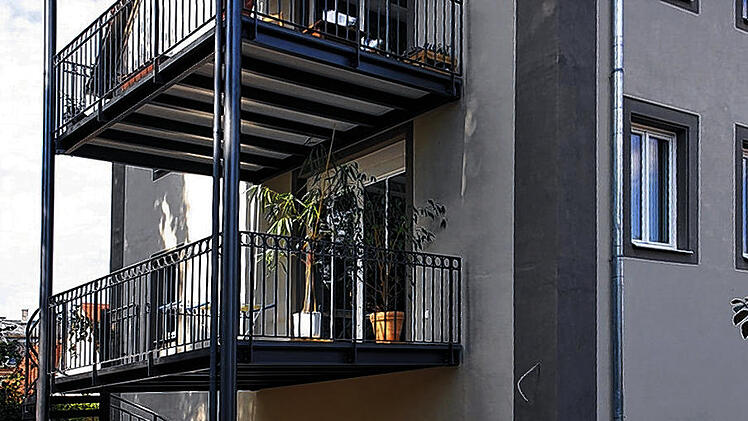Die Kunst, Alt und Neu harmonisch zu verbinden, musste Karl-Heinz Schmidt unter anderem bei den Balkonen unter Beweis stellen. Über drei Geschosse erstreckt sich die Metall-Holz-Konstruktion, die sich perfekt ans beige-grau-bordeauxrot gestrichene, historische Ensemble anlehnt - im wahrsten Sinn des Wortes.