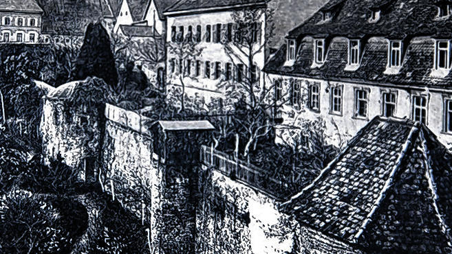 Um bis zum Eckturm vorzudringen, musste Hans Lang sich erstmal durch dichtes Gestrüpp arbeiten. Dann betrat er vorsichtig das Rund aus Bruchsteinen, das 50 Jahre lang im Dornröschenschlaf gelegen hatte. „Das war schon sehr spannend“, erinnert sich Lang. Im Inneren des Turmes lässt ein schmales Loch erahnen, dass es in der unteren Etage noch einiges zu entdecken gibt. „Bevor der Bodenbelag aus Muschelkalk erneuert wird, erweitern wir das Loch und schicken jemanden runter“, sagt Lang. Alte Zeichnungen lassen vermuten, dass es dort unten noch Türen gibt. Doch wohin sie führen, weiß niemand. Ob es vielleicht geheime Gänge gibt? Hans Lang schüttelt den Kopf, meint dann aber lachend: „Wer weiß es schon. . . .“