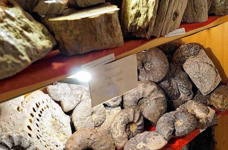 Gefunden wurde viel, ausgestellt auch, aber manches hat Hans Klein auch verkauft und dafür andere Ausstellungsstücke erworben, die er in aller Welt entdeckte. Versteinertes Holz in schillernden Farben gibt es im Museum, schier unzählige Edelsteine, ein versteinertes Dinosauriergelege, eine jungsteinzeitliche Großklinge aus Hornstein, das laut Hans Klein größte Ei der Welt von einem Riesenstrauß aus Madagaskar, einen Meteorit vom Mond, einen Neuschwanstein-Meteorit und vieles, vieles mehr.