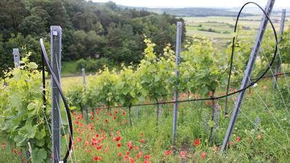 Der Dingolshäuser Armin Loos hat in seinem Leben schon vieles ausprobiert, Flexibilität ist sein zweiter Vorname. Vom Schweinehalter über den Ackerlandwirt ist er beim Winzerberuf gelandet. Sieben Hektar umfasst der Familienbetrieb am Fuß des Steigerwaldes. Die Flächen sind auseinandergerissen, zwischen manchen Weinbergen liegen hunderte Meter Ackerland oder Wiesen. Ein Problem, das er mit etlichen Kollegen teilt. Ein Problem, das die Bewässerung erschwert. „Wir brauchen eine sichere Wasserversorgung, um mit den Gegebenheiten der Natur spielen zu können“, sagt er. Die Landesanstalt für Wein- und Gartenbau (LWG) forscht seit eineinhalb Jahren an einer Lösung.