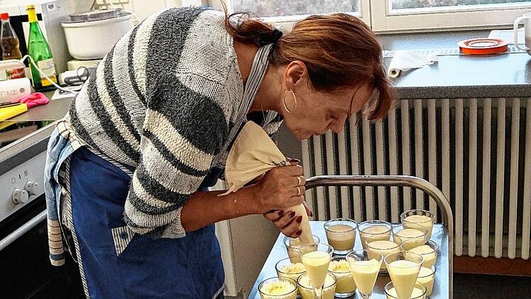 Möhren-Ingwer-Suppe (10 Personen): 1 kg Möhren, 1 Stück Ingwer (zirka 6 Zentimeter), 6 EL Butter, 2 l Gemüsebrühe, 200 ml Sahne, 2 TL Curry, etwas Salz, Pfeffer, 2 EL Zucker. Zubereitung: Möhren waschen, schälen und in dünne scheiben hobeln. Ingwer schälen und fein würfeln. Beides in zerlassener Butter anschwitzen. Zucker darüber streuen und leicht karamellisieren. Mit Brühe aufgießen, bei mittlerer Hitze 20 Minuten kochen lassen. 10 EL der gekochten Möhren für die Deko aus der Suppe nehmen, restliche Suppe fein pürieren. Sahne halbfest aufschlagen. Die Suppe mit Gewürzen abschmecken, in Teller füllen, Sahnehäubchen und Möhrenscheiben darauf arrangieren mit Currypulver bestreuen. Die Suppe kann schon am Vortag gekocht werden. Unter Rühren langsam erwärmen.