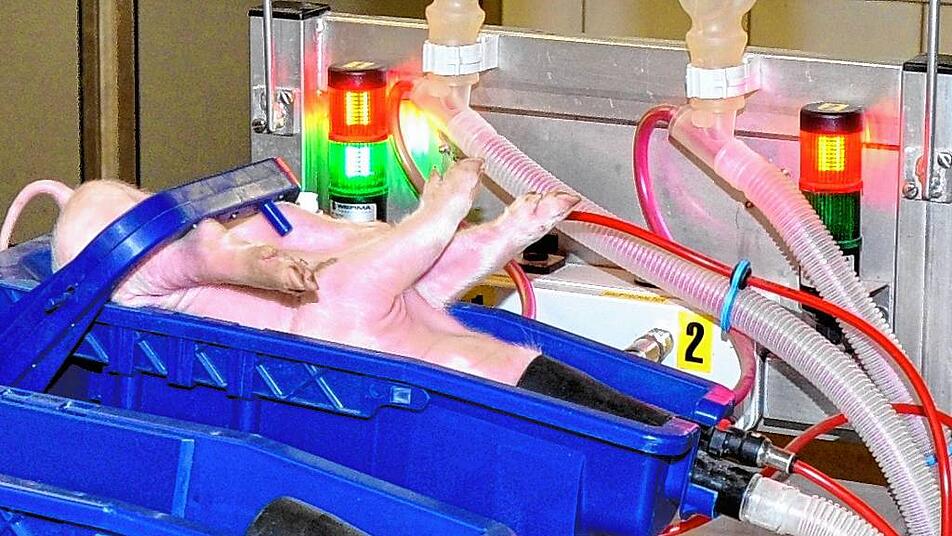 „Die Gestelle mit den Atemmasken für die Vollnarkose sehen erst mal seltsam aus“, sagt Berenz, während er das Foto dreier Ferkel zeigt, die festgeschnallt in Plastikkästen auf dem Rücken liegen, die Beine sind in die Luft gereckt und die Köpfe stecken in Atemmasken. „Hier bleiben die Ferkel beim Kastrieren regungslos.“ Bei der Lokalanästhesie, die wir Menschen vom Zahnarzt kennen, sind die Tiere bei Bewusstsein und wehren sich laut Berenz teilweise gegen das Festhalten. „Jede Methode hat ihre Vor- und Nachteile“, fasst Peter Lindner zusammen. „Es wird gerade intensiv geforscht, beide Methoden werden weiterentwickelt und ausprobiert. Bis Anfang 2021 wird sich noch einiges tun.“