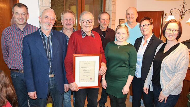 In seiner Laudatio dankte Flößer dem neuen Ehrenmitglied für die "Rettung des Vereins" vor acht Jahren. Seitdem sei Bruno Sauer unermüdlich im Einsatz gewesen. Speziell die Ortsverschönerung habe ihm am Herzen gelegen. Seine Arbeit mit Kindern und Jugendlichen habe großen Anklang gefunden. Flößer verwies auf den Bau von Vogelhäusern, was dem Nachwuchs sicherlich in guter Erinnerung geblieben sei. Sauers "letzte größere Aktion" mit der Rundbank am neuen Kastanienbaum sei heute noch zu bewundern. Der Ruheplatz soll bei einem der nächsten Pflanzenschutztreffs eingeweiht werden. Flößer überreichte seinem Vorgänger die Ehrenurkunde und einen Gutschein für einen Bienenbaum.