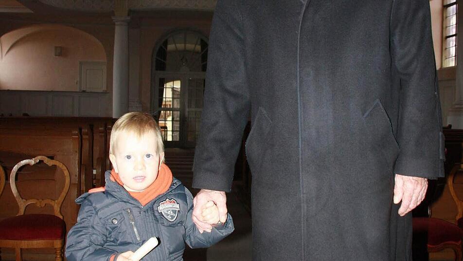 Nach dem Gottesdienst, als die Kirche sich längst geleert hatte, durfte der kleine Moritz seinem Uropa helfen, die Kerzen zu löschen.
