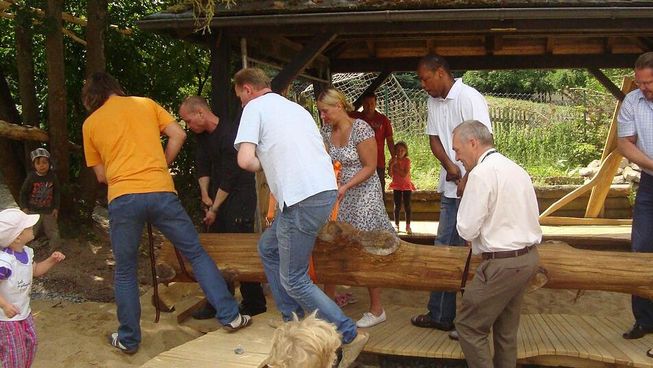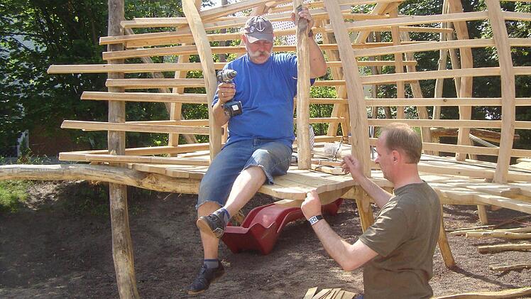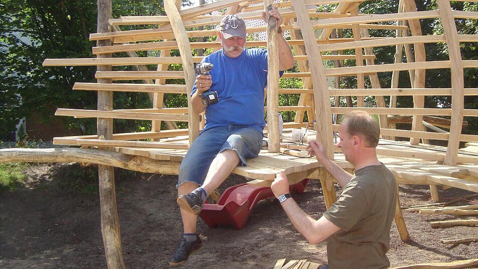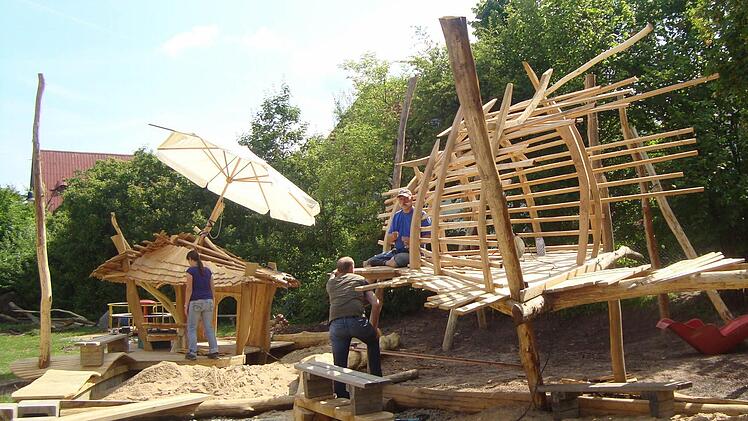 "Jeder, wie er konnte" Das Besondere: In Castell rückte nicht etwa ein Bautrupp an. Die Eltern und Großeltern selbst legten Hand an, hämmerten, sägten, schliffen und malten, was das Zeug hielt. Unter der "Aufsicht" der Spielbaustelle entstand ein Abenteuer-Garten der Extraklasse.