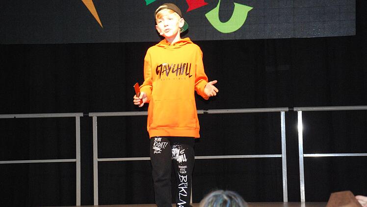Auf die Tanzmäuse Lollipops Sulzfeld folgte der elfjährige Noah Sattes aus Albertshofen, der in seiner Büttenrede erzählte, was er alles mit seinem ersten Handy anfangen kann. Dabei war das Telefonieren das unwichtigste Feature. "Dieses Handy ist mein bester Deal, denn endlich bin auch ich mobil", zog er sein Fazit. "Brezeln schnappen", also Brezeln von der Schnur essen, lautete die nächste Herausforderung für Groß und Klein, bevor die KiKaG Junioren ihre Performance ablieferten.