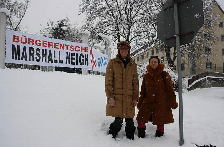 Der Bürgerentscheid der Initiative Marshall-Heights stellt dagegen folgende Fragen: Sind Sie dafür, dass die Stadt Kitzingen das Erstzugriffsrecht zum Zweck des Zwischenerwerbs der ehemaligen US-Wohnsiedlung Marshall Heights ausübt? Sind Sie dafür, dass der dort vorhandene Wohnraum erhalten wird? Und: Sind Sie dafür, dass dort die Voraussetzungen für die Entwicklung eines Wohngebietes geschaffen werden, die den Vorstellungen der zukünftigen Nutzer größtmögliche planerische Freiheit lassen?