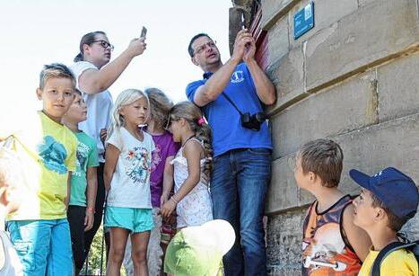Die 13 Kinder der Kidstour am Mittwochvormittag sind alle noch zu jung für ein eigenes Smartphone. Aufgeteilt in zwei Gruppen machten sie die Tour durch Marktbreit mit ihren beiden Führern, die ihre Smartphones den Kindern zur Verfügung stellten, die Tour erläuterten und für Fragen zur Verfügung standen. Und natürlich stellten sie auch die entscheidende Frage der Kidstour an der jeweiligen Sehenswürdigkeit.