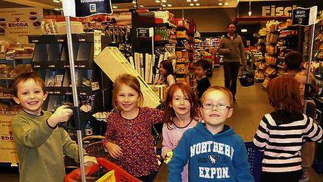 Wie funktioniert ein Einkaufsmarkt vor und hinter den Kulissen? Das erfuhren 18 Vorschulkinder des katholischen Kindergarten St. Felizitas Münsterschwarzach und die Kindergärtnerin Alexandra Müller bei Hermann Schliermann im Edeka-Markt in Dettelbach.
