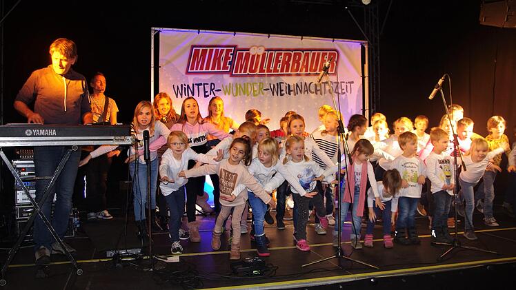 Der Musiker Mike Müllerbauer und sein Keyboarder Andy verstanden es, beim Mitmach-Konzert in Geiselwind die zahlreichen Kinder und Familien mitzureißen, heißt es in einer Pressemitteilung. Ihr Programm war eine Mischung aus witzigem Entertainment und fetzigen Liedern. Für die letzten fünf Lieder kamen 18 Kinder der Grundschule Geiselwind und 19 Kinder vom Abtswinder Kinderchor auf die Bühne. Sie hatten mit Pfarrer Hans Gernert und Renate Hagen beziehungsweise mit Elisabeth Zehnder die Lieder und Bewegungen dazu eingeübt. Die Idee zu diesem Angebot für Familien kam von Irmtraud Väth. Bei der Organisation arbeiteten die evangelische Pfarrei Rehweiler, die katholische Pfarrei Geiselwind, der CVJM-Haag, die Landeskirchlichen Gemeinschaft Wasserberndorf und Manuela Strohofer eng zusammen. Am Samstag, 30. November, sind fast dieselben Akteure – der CVJM, die LKG und der Kirchenvorstand Rehweiler – mit einem Stand und der Möglichkeit zum Stockbrot-Backen auf dem Geiselwinder Weihnachtsmarkt vertreten.