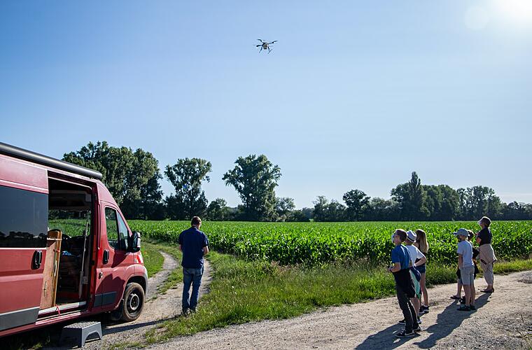 Es gibt Schädlingsbekämpfung und es gibt Schädlingsbekämpfung. In der Abtei Münsterschwarzach setzt man auf natürliche Methoden. Und das wurde direkt zu einem Freiluft-Corona-Unterricht, wie es in einer Pressemitteilung heißt. Mit einer Drohne sind Kugeln mit Eiern der sogenannten Trichogramma Schlupfwespen auf den Maisfeldern der Abtei Münsterschwarzach ausgebracht worden. Sie sollen gegen den Maiszünsler, ein Schädling, in dessen Eiablage wirken, indem sie diese mit eigenen Eiern befallen. Diese natürliche Schädlingsbekämpfung konnten Schüler der fünften Jahrgangsstufe im Geografieunterricht von Anette Müller-Kaler direkt miterleben.