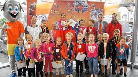 Das Laufen auf dem speed4-Parcours, das Abklatschen mit dem Maskottchen Speedy, lobende Worte von Eltern und Großeltern sowie Präsente, Urkunden und Pokale – dieser Mix machte 80 qualifizierten Mädchen und Buben aus umliegenden Grundschulen am Samstag großen Spaß. Das bundesweite Kinder-Laufprojekt motivierte heuer 1200 Grundschüler im Landkreis und die Verantwortlichen kündigten an, dieses Jahr deutschlandweit die Marke von einer Millionen Teilnehmern brechen zu wollen.
