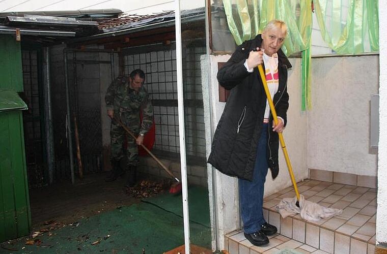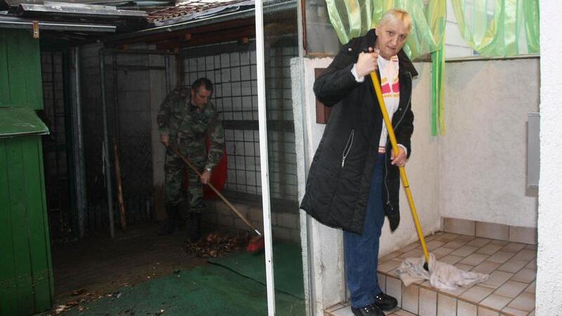 Gestern haben Jutta und ihr Mann Gerhard Bücherl die Böden geschrubbt, die Gartenfliesen gekehrt und abgespritzt sowie das Mobiliar aus dem Frieseursalon - dieses hatten sie vorsichtshalber aus dem Erdgeschoss in den ersten Stock