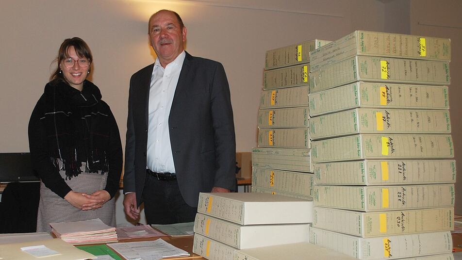 Die 28-Jährige hat Geschichte und Kunstgeschichte in Würzburg studiert und machte den Master in Kunstgeschichte. Sie hat während des Studiums Erfahrungen in der Arbeit im Würzburger Stadtarchiv gesammelt und durch ihre Freundin Julia Halbleib kam sie darauf, sich bei 7/22 Südost zu bewerben. Die Fachkraft arbeitet noch bis Februar das Markt Einersheimer Archivmaterial auf. Sichten, einordnen, katalogisieren, verpacken, in Markt Einersheim warten viele Archivkartons auf Johanna Falkenstein. Im Dachgeschoss des Rathauses wurde ein klimatisch passender Raum eingerichtet, wo die aufgearbeiteten Akten und Dokumente dann eingelagert werden.